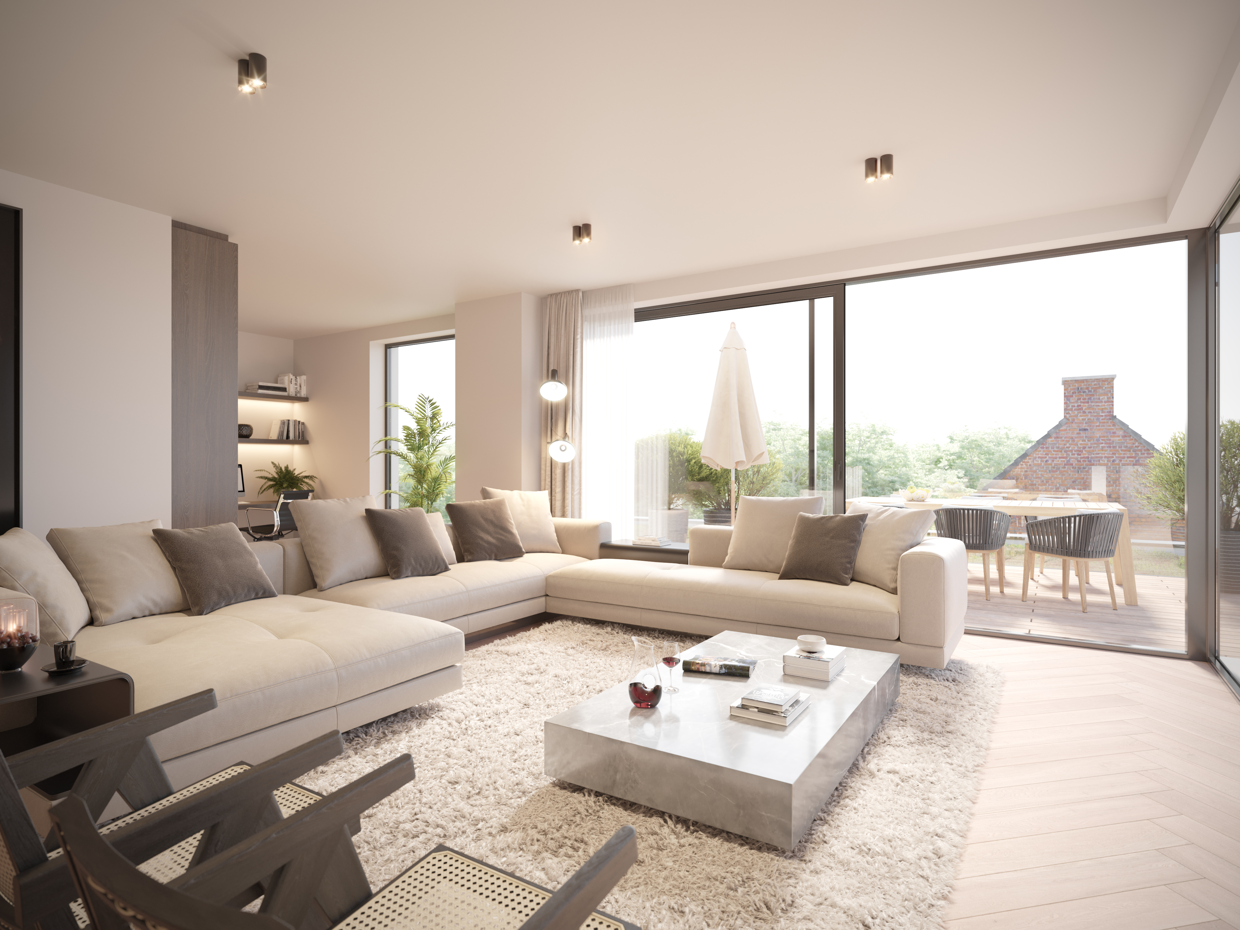 *Vanafprijzen exclusief kosten en btw. De weergegeven simulaties en berekeningen zijn louter informatief en zonder contractuele waarde. Renders en visuals zijn niet-contractuele impressies. Het verlaagde btw-tarief van 6% kan enkel worden toegepast indien en voor zover aan de wettelijke voorwaarden is voldaan.